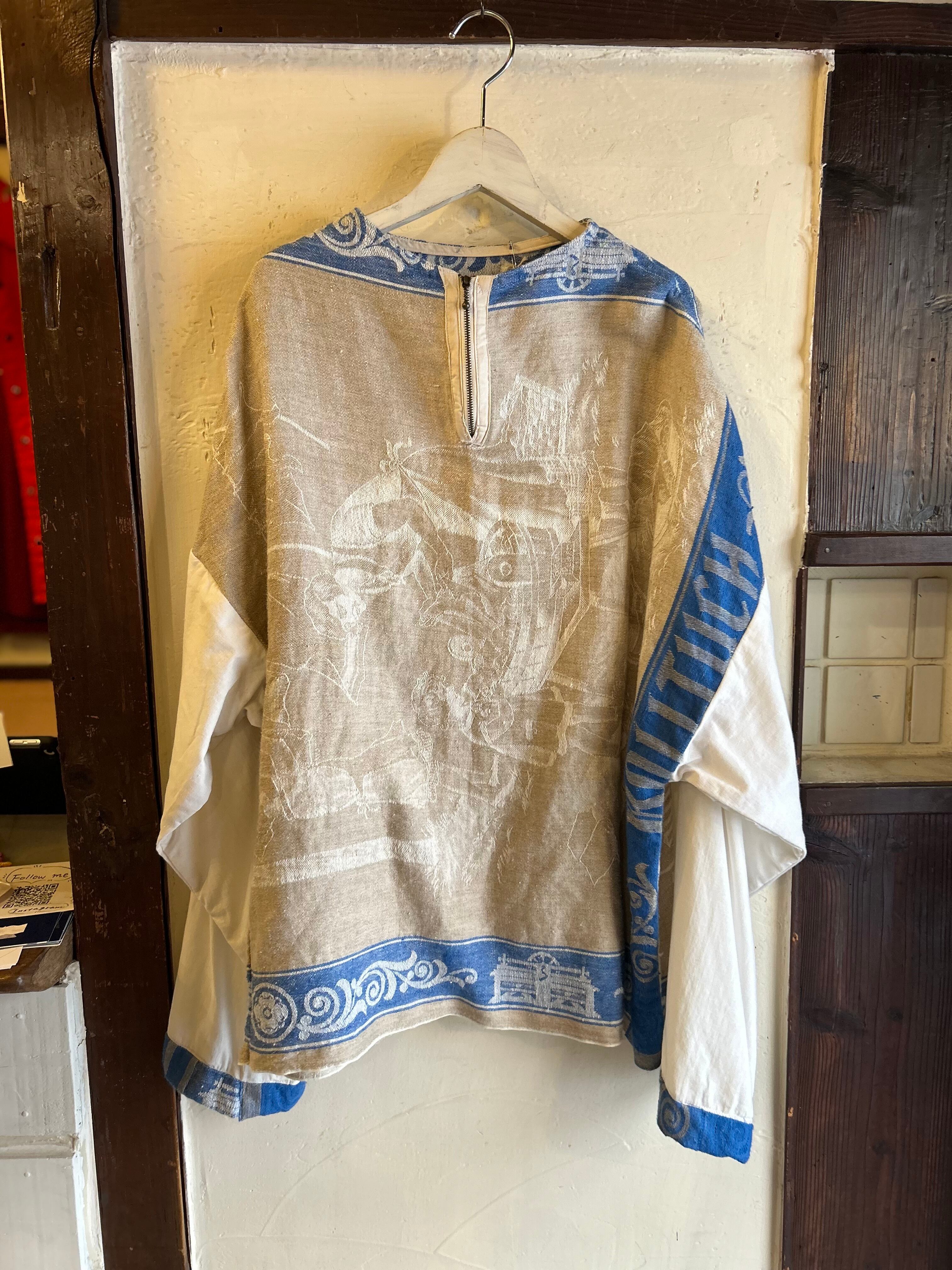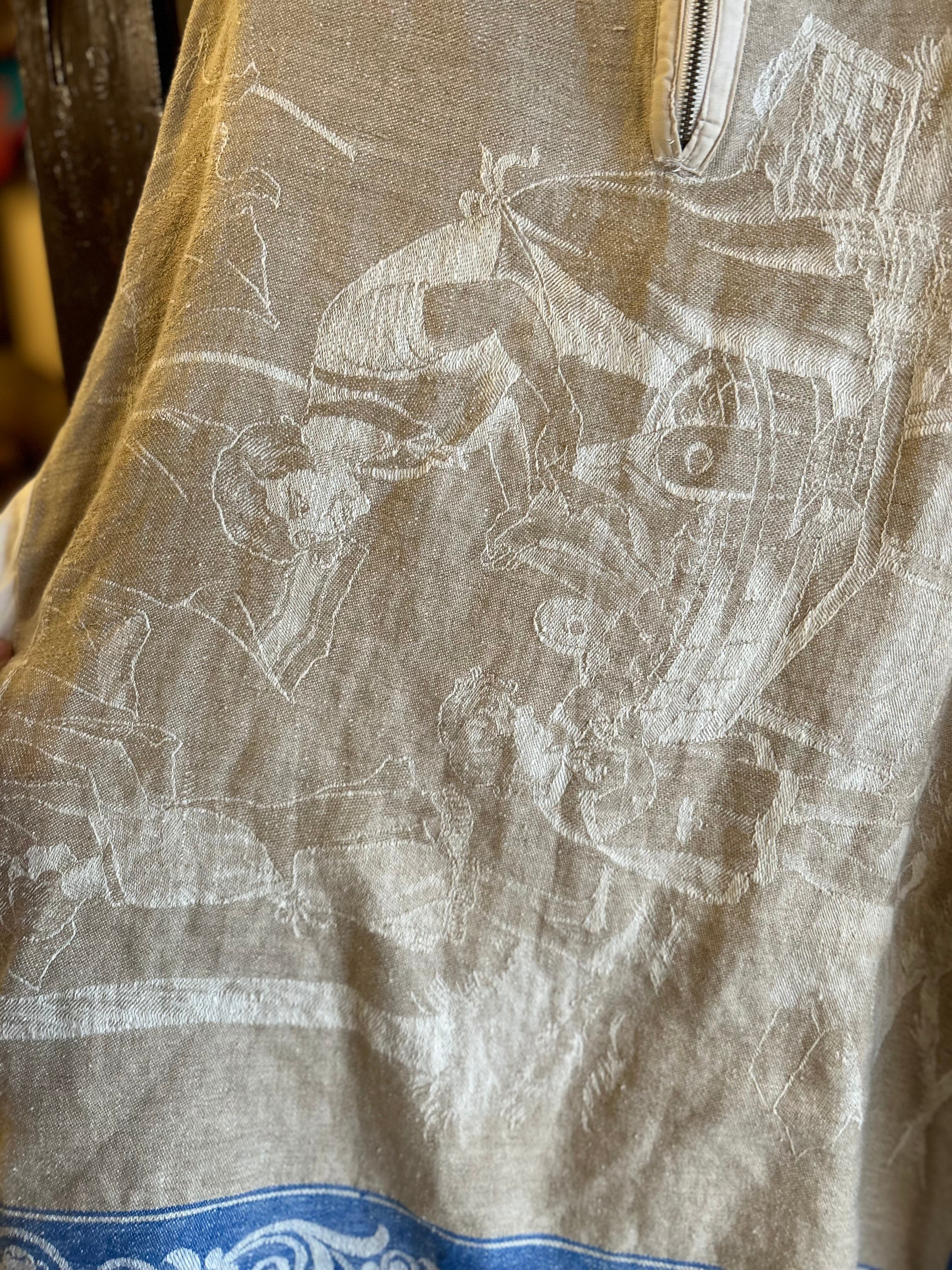 洗濯物をしているお母さんと子どもたちが描かれたタペストリーを大胆に使ってリメイクしました。