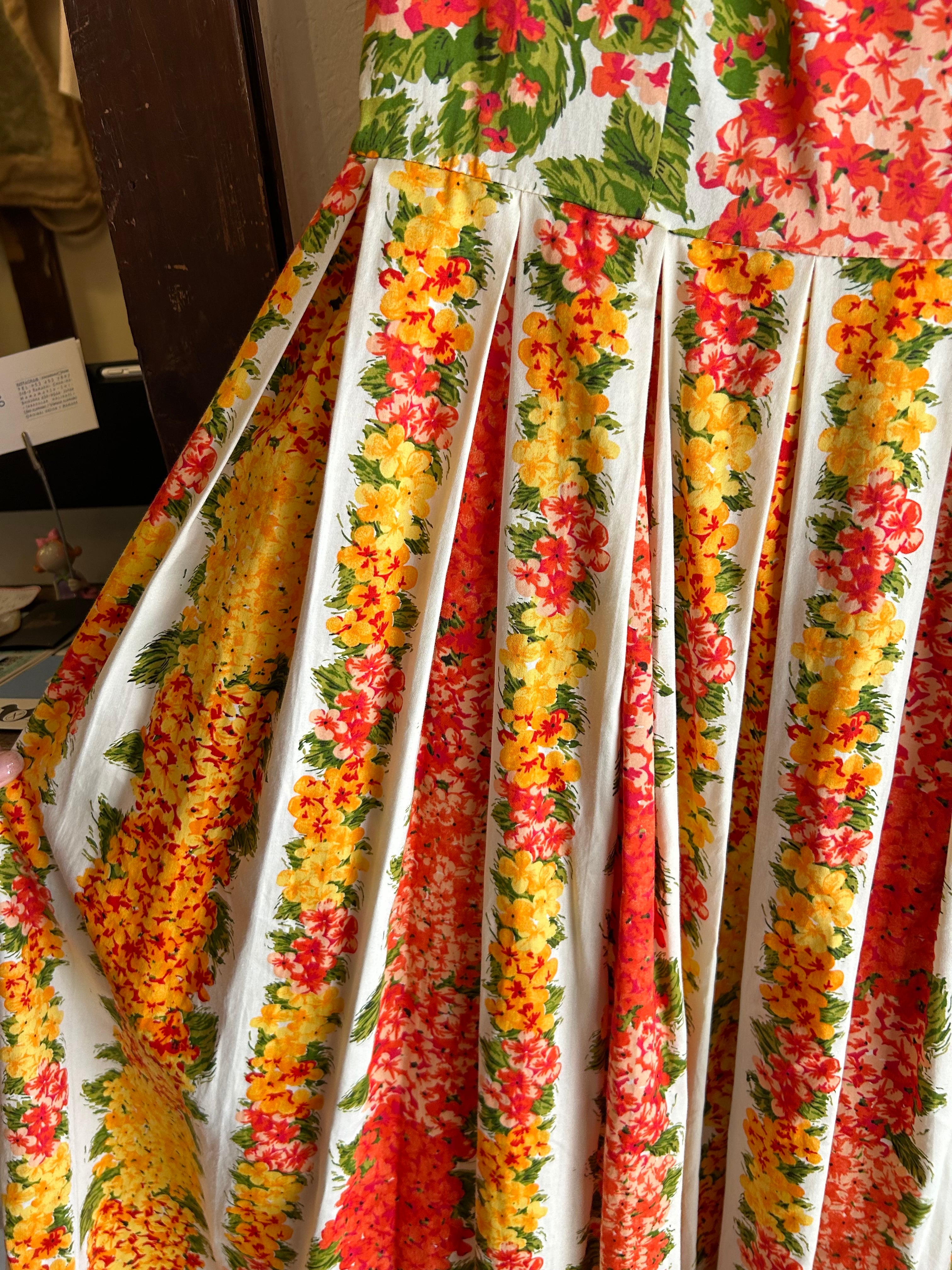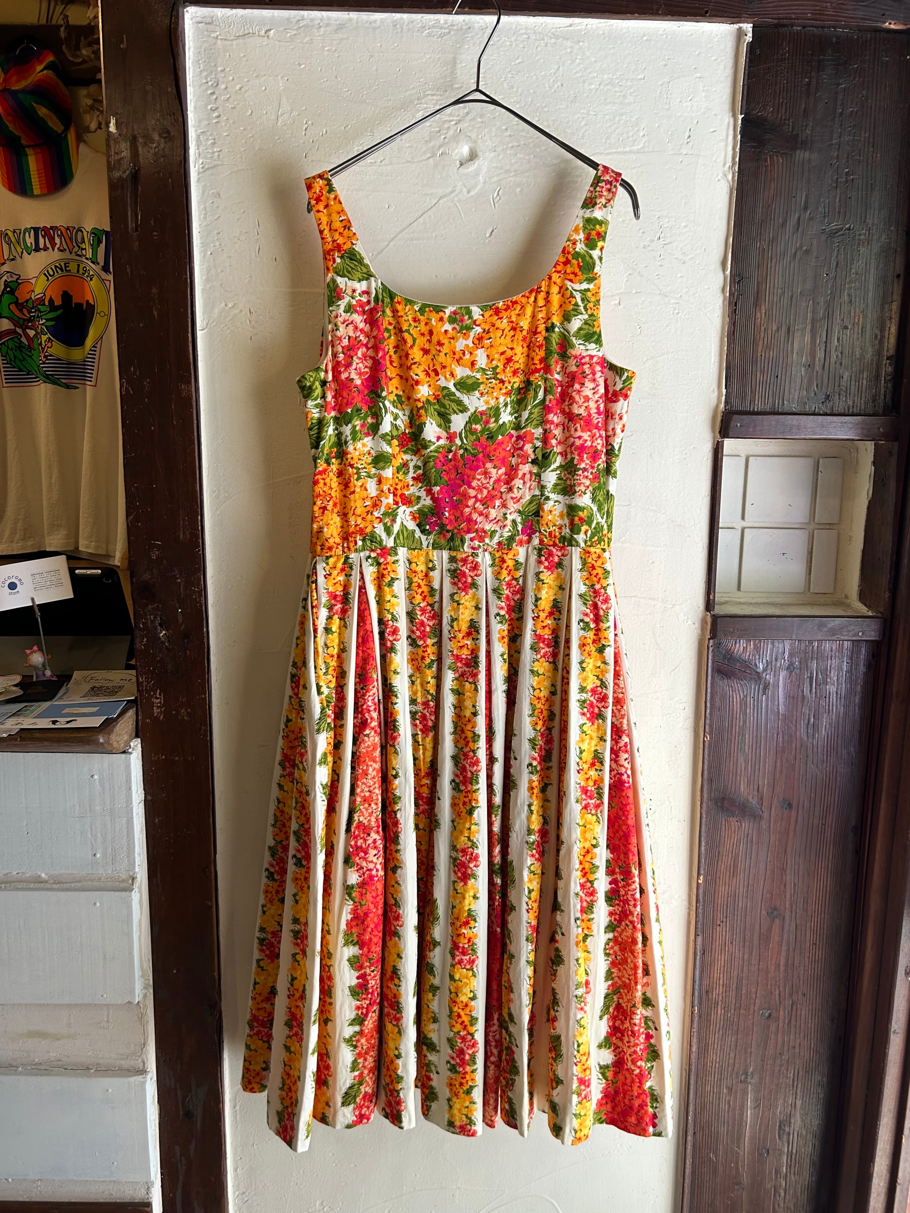 服一面に広がる鮮やかな花柄が印象的です。