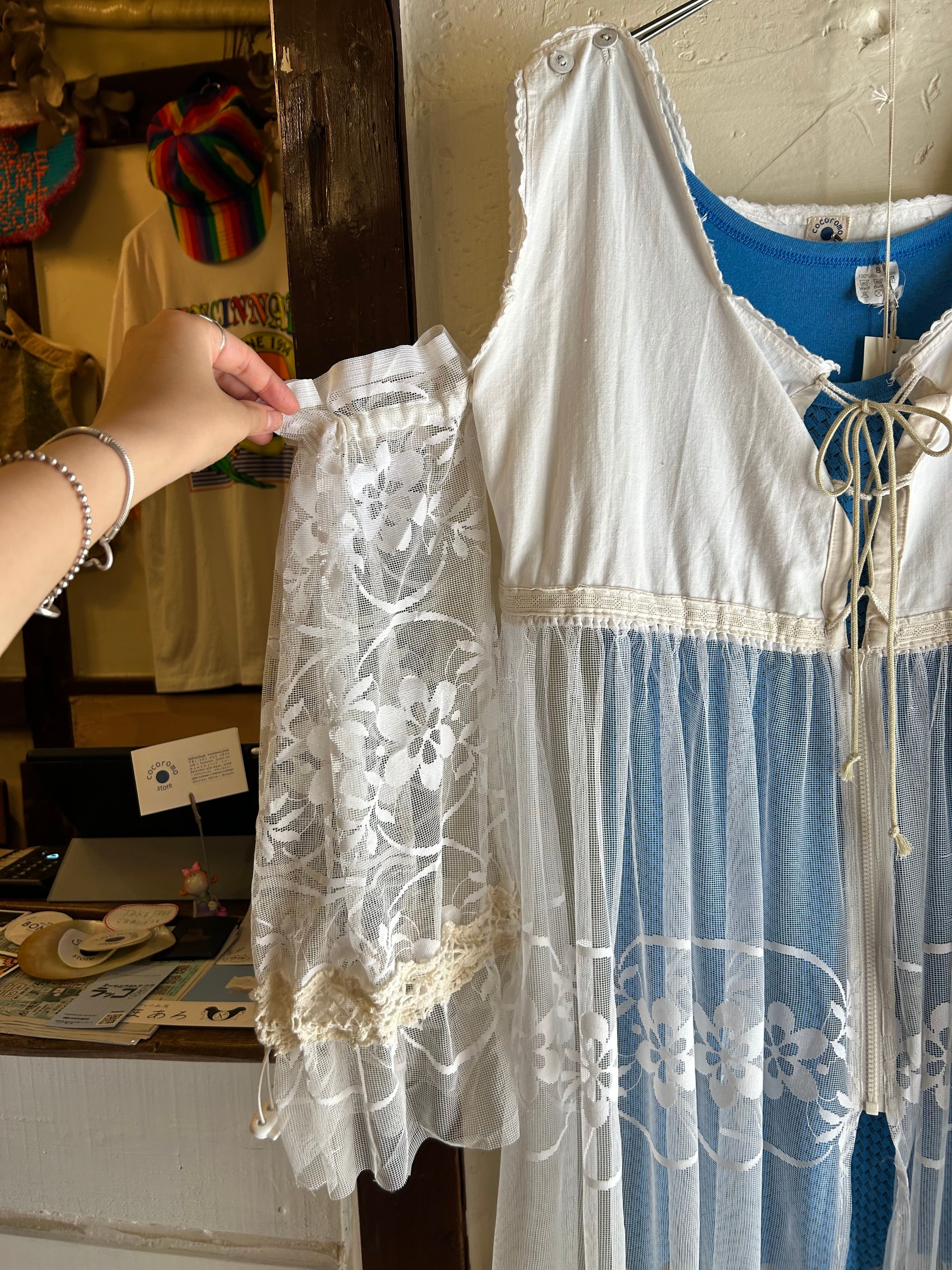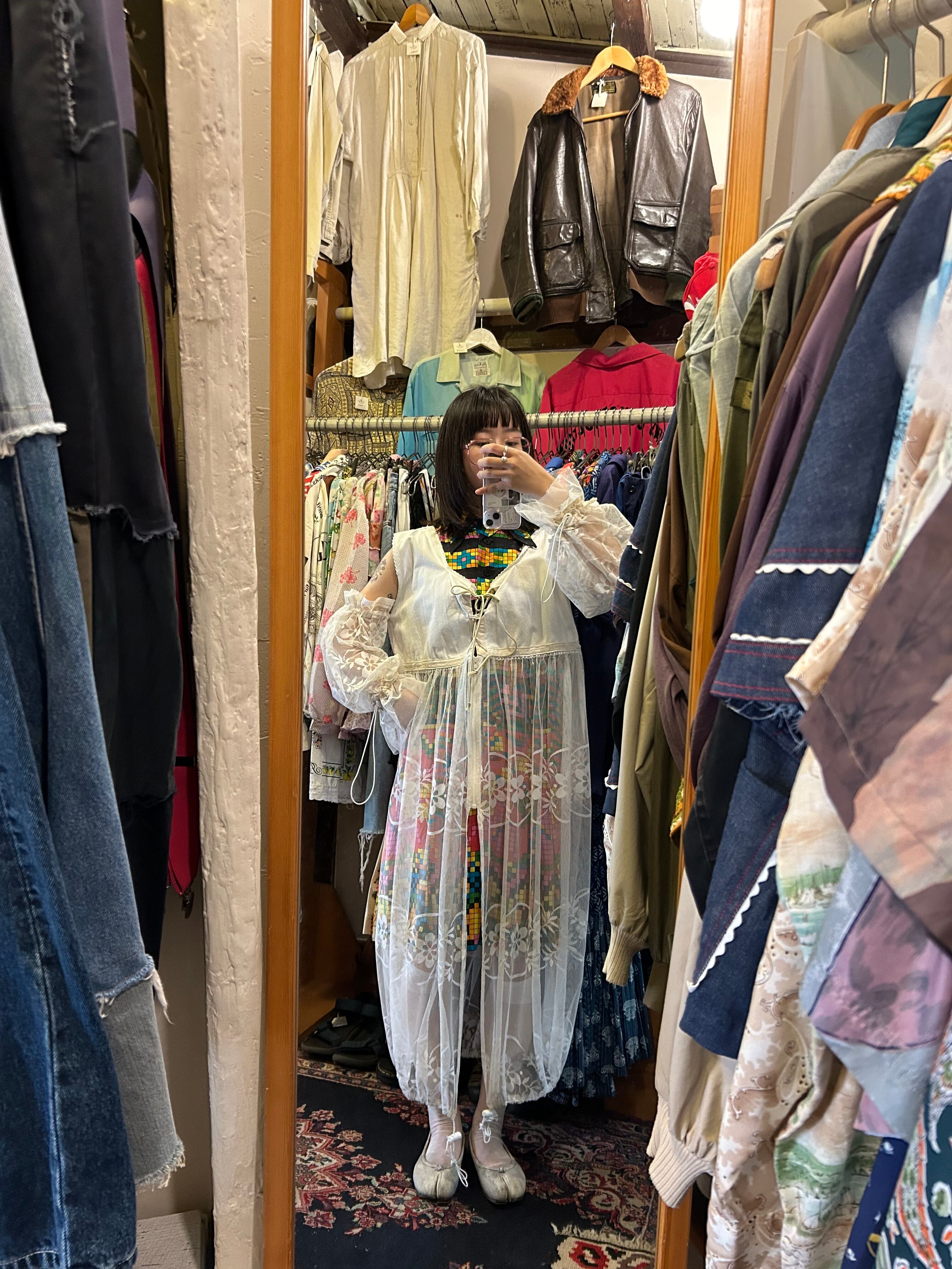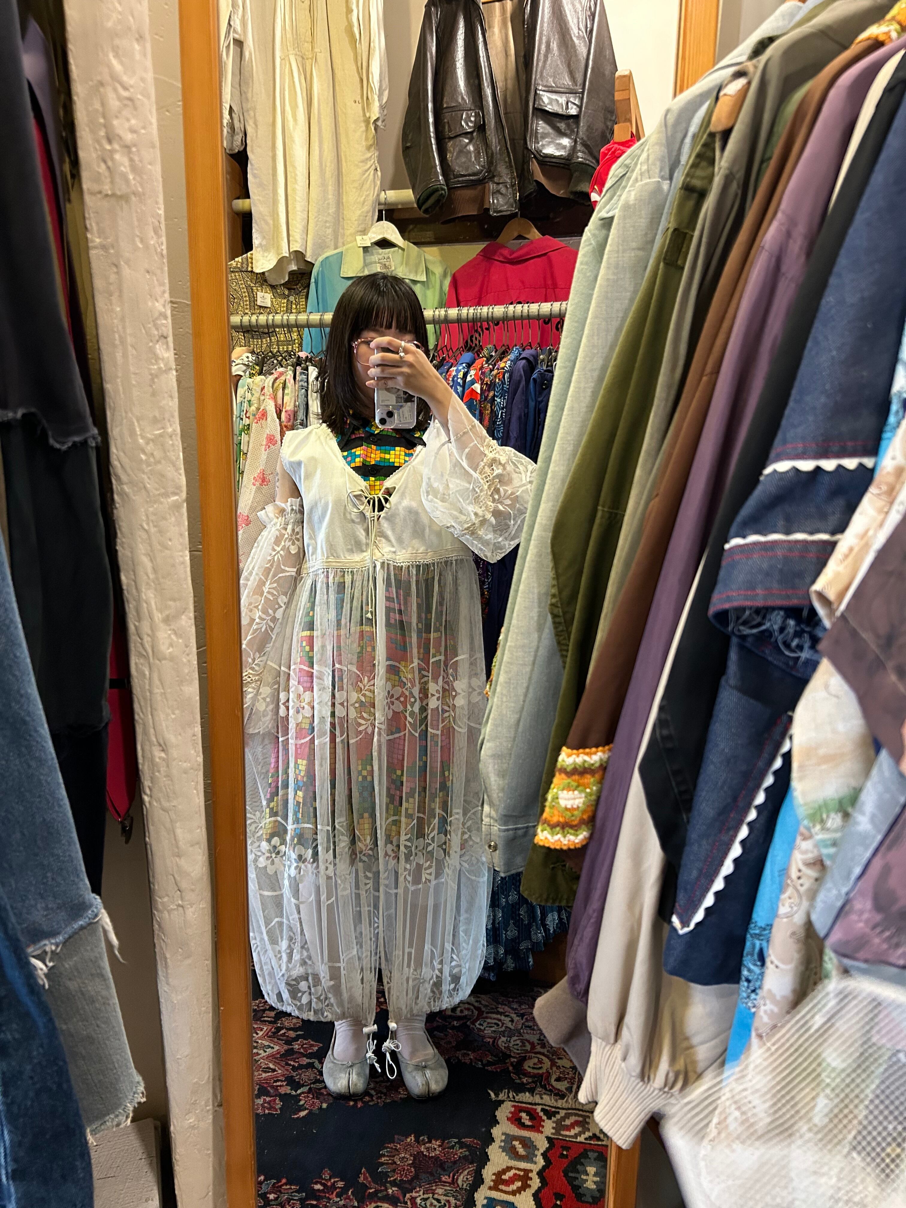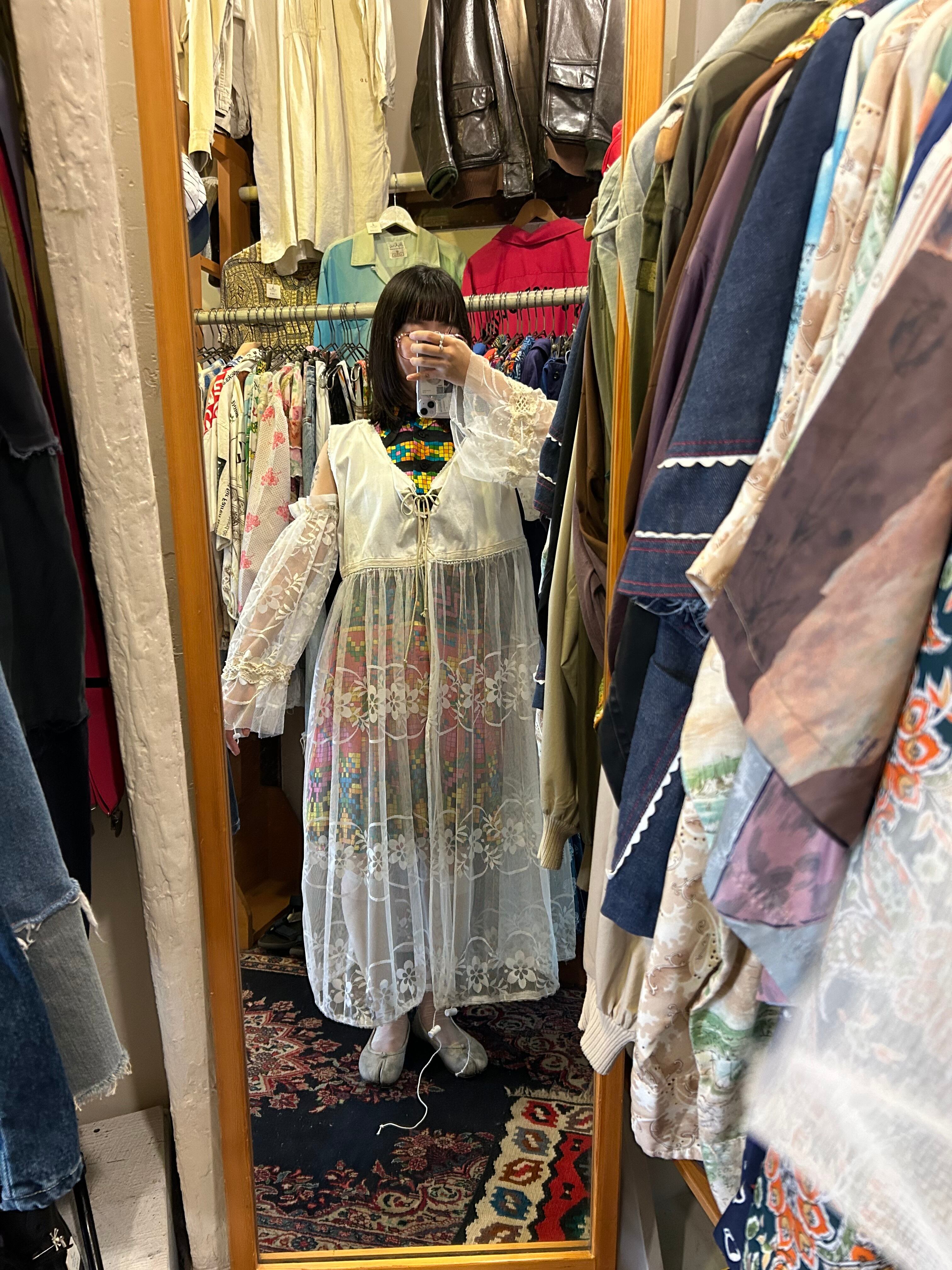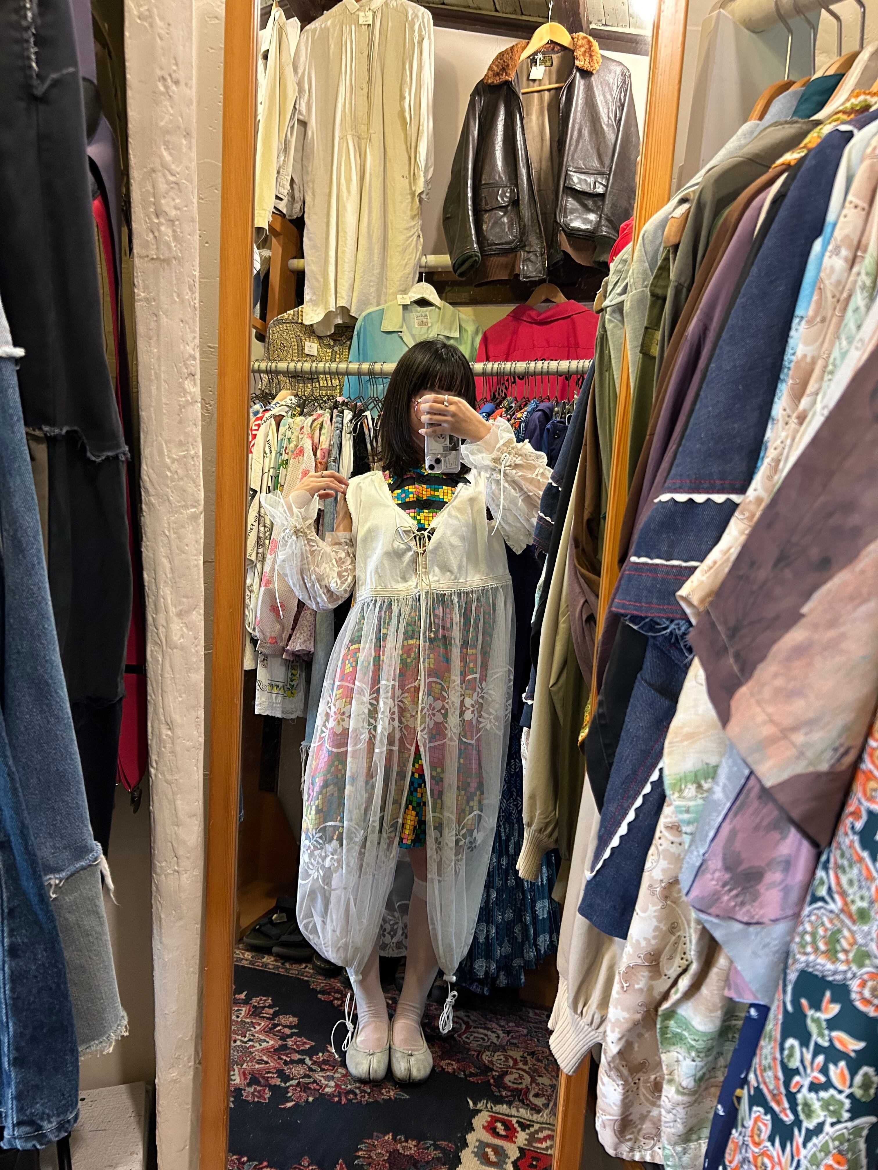 ヴィンテージのナイトワンピをトップに使い、他はレース生地で仕上げています。