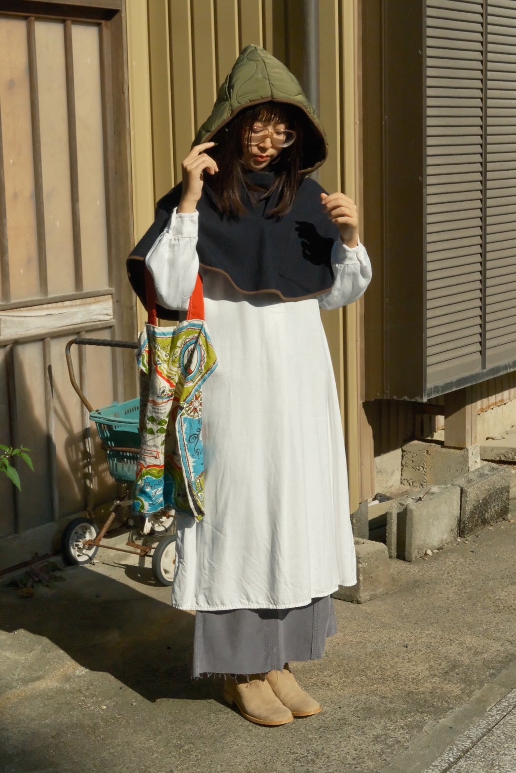セーラー服をリメイクしたポンチョです。