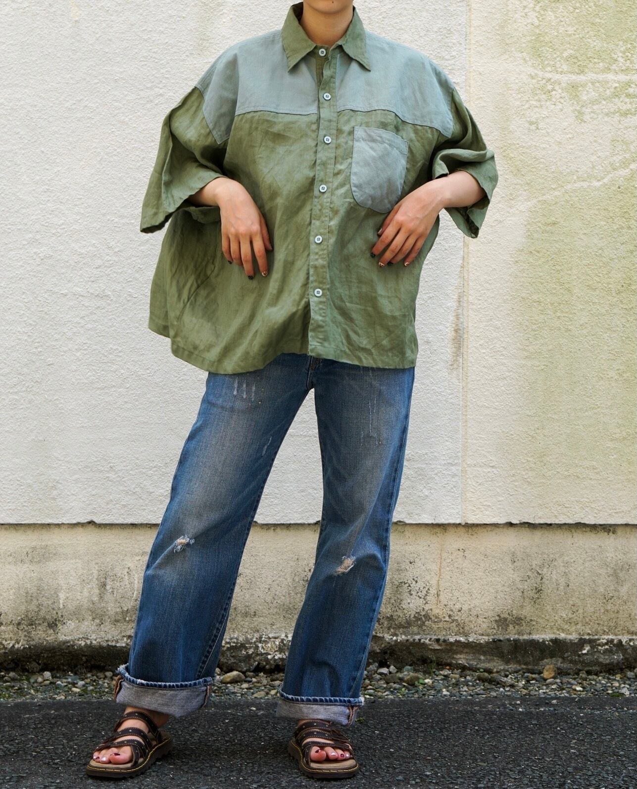 シャツジャケットとしても着こなせるサイズ感のリネンシャツです。