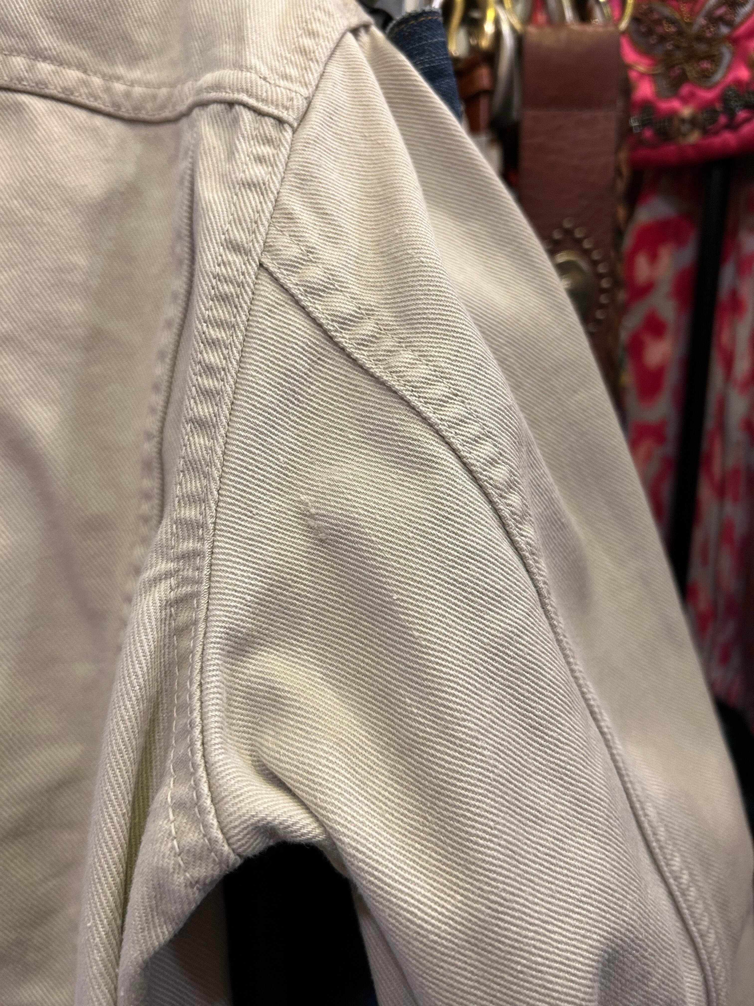 オフホワイトのデニムジャケット。