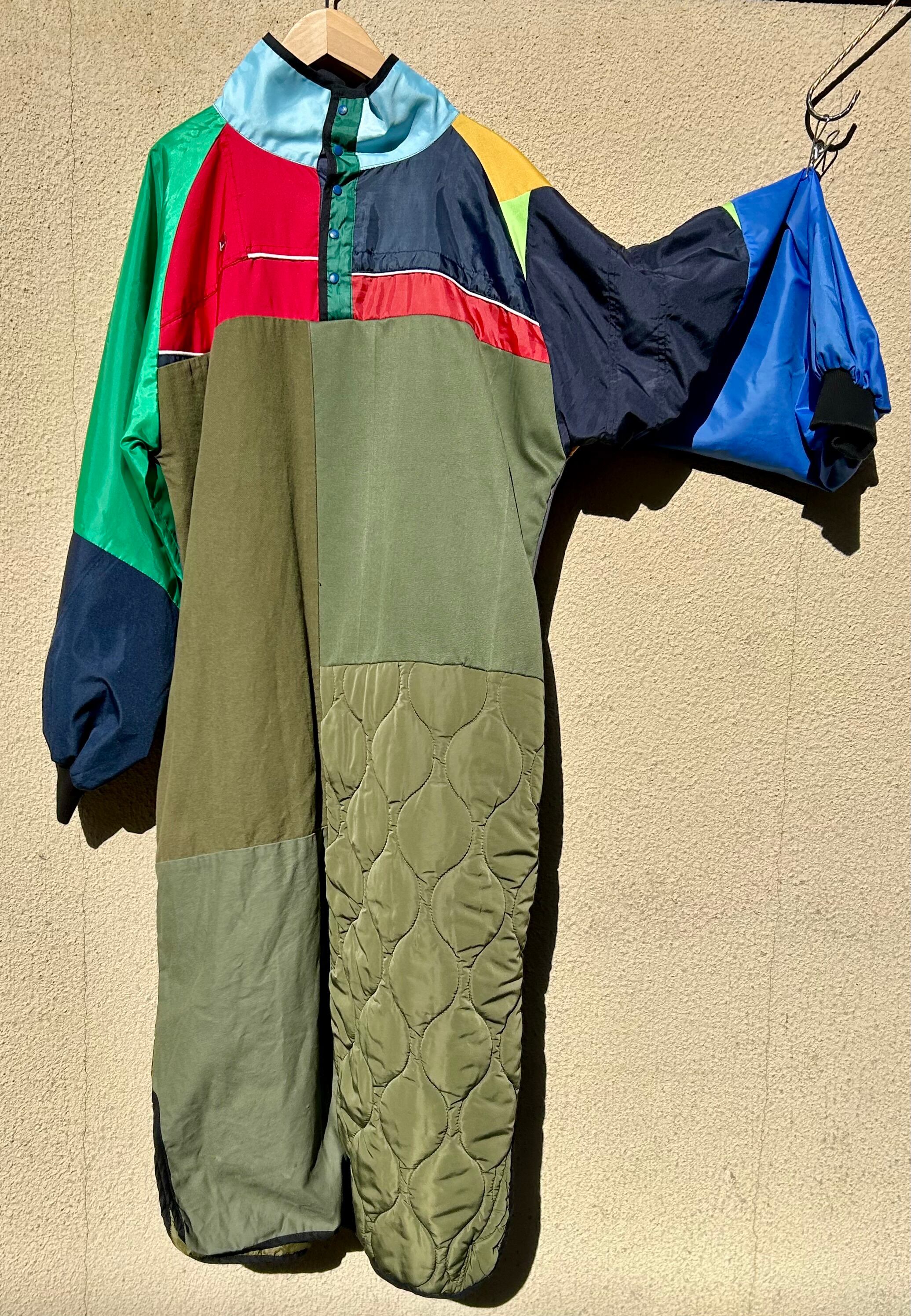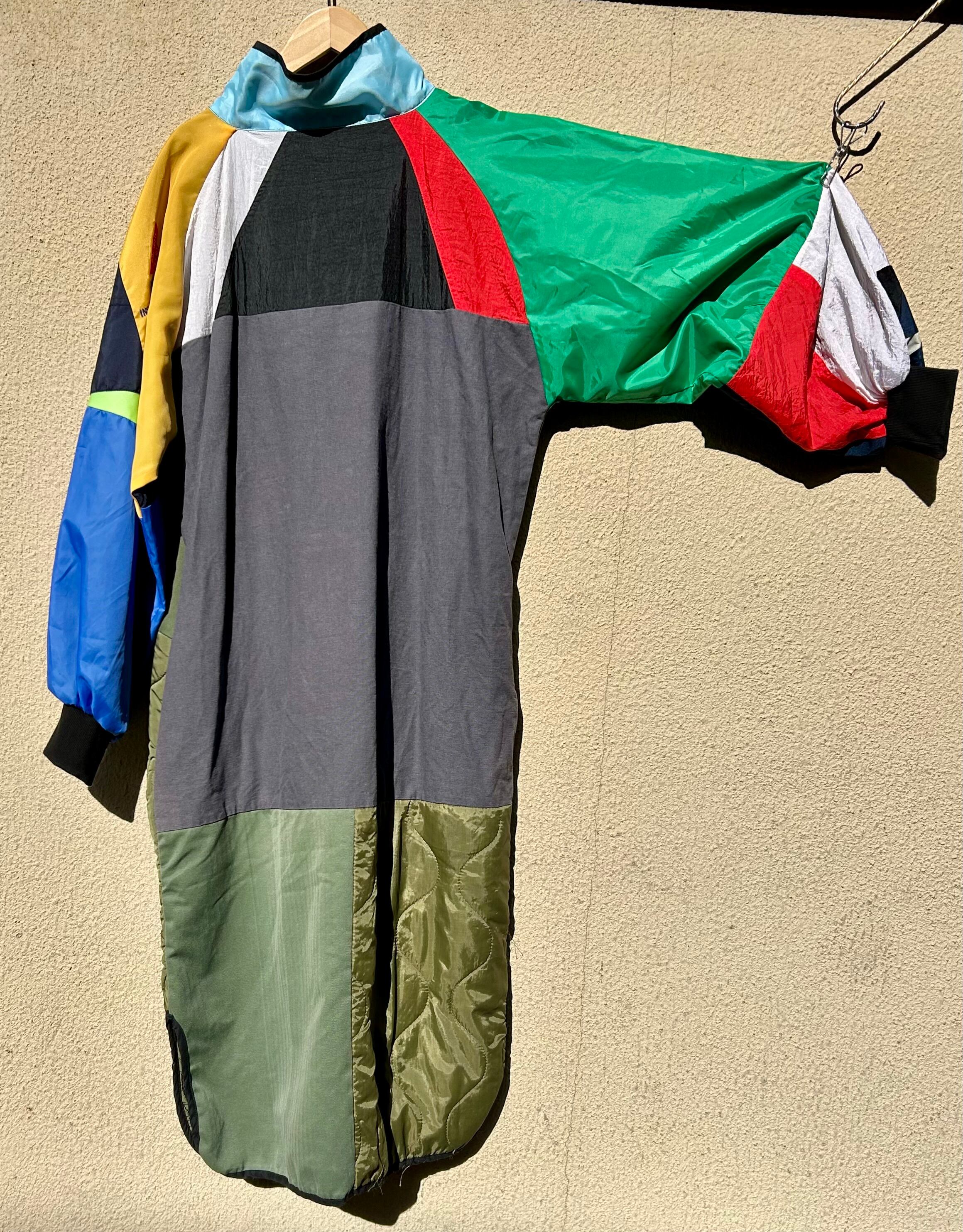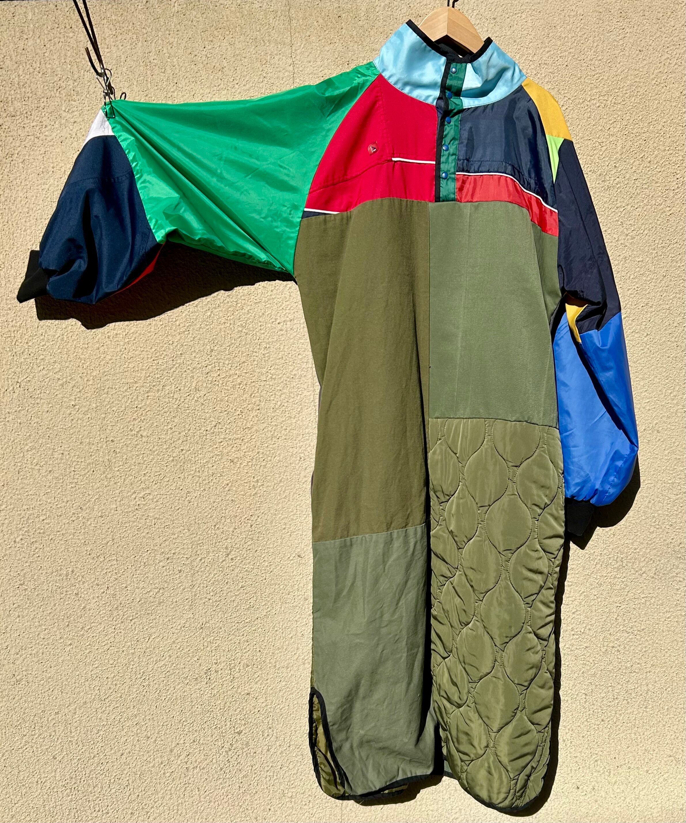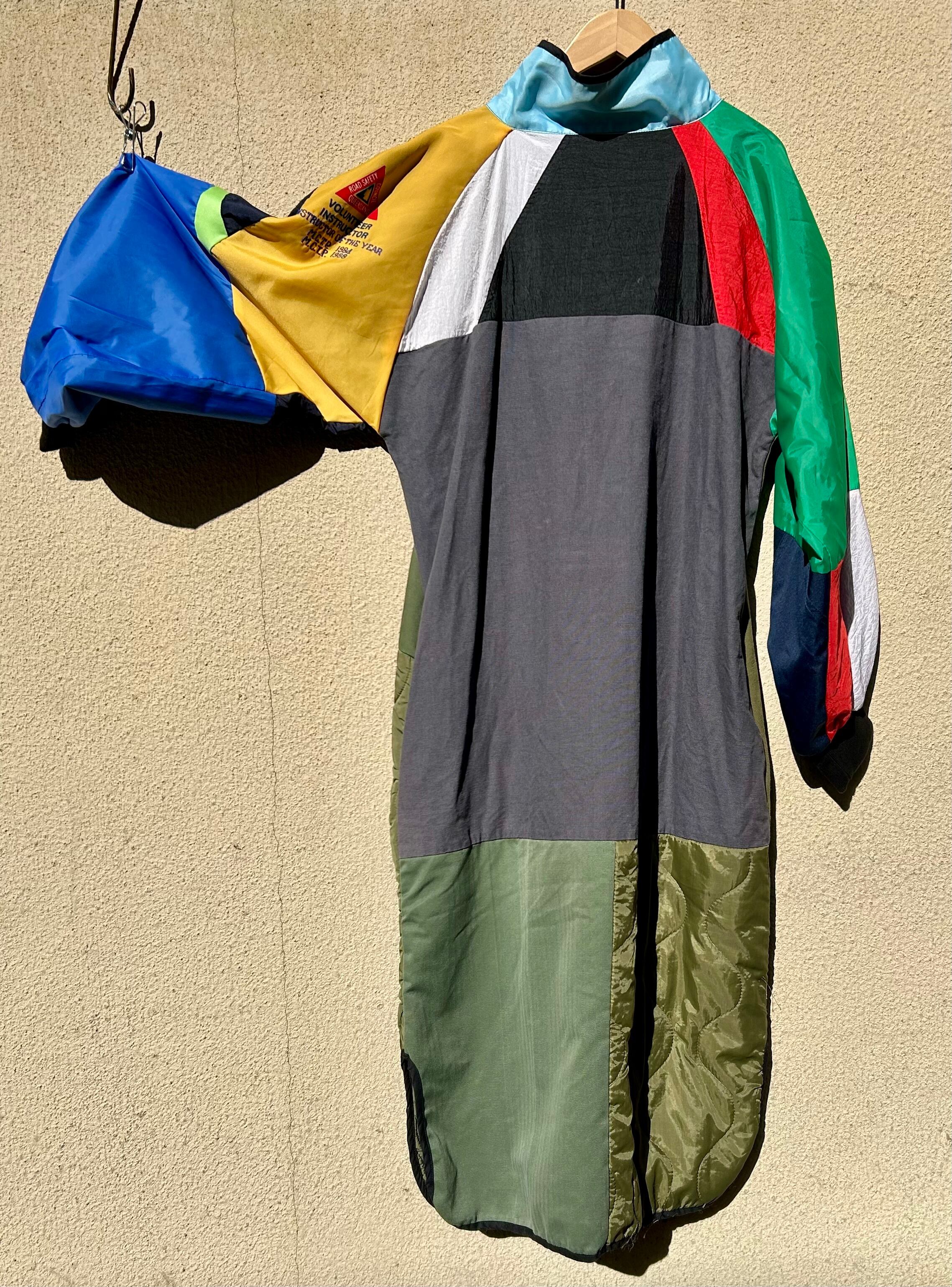 オリジナル リメイクワンピース(ナイロンパッチワーク×アーミーグリーンパッチワーク)