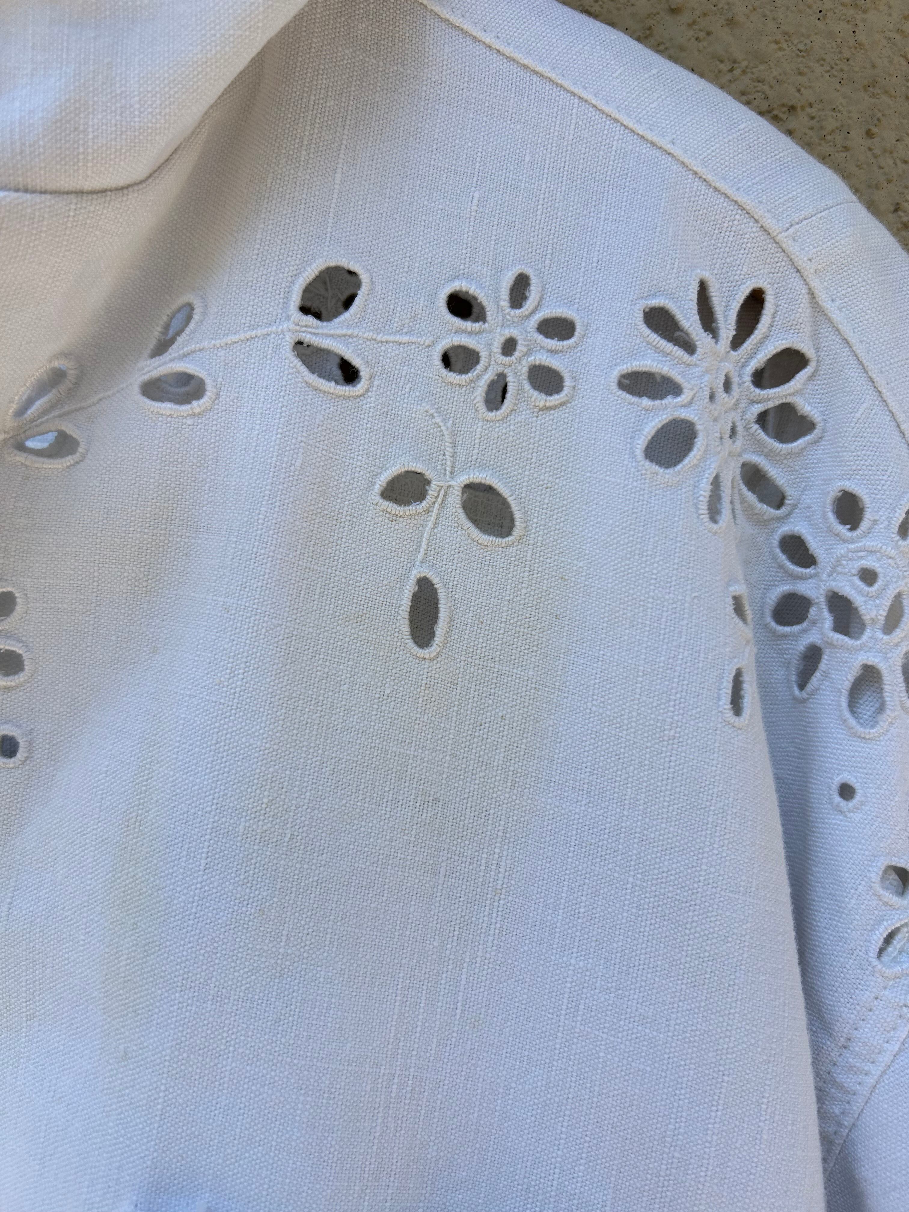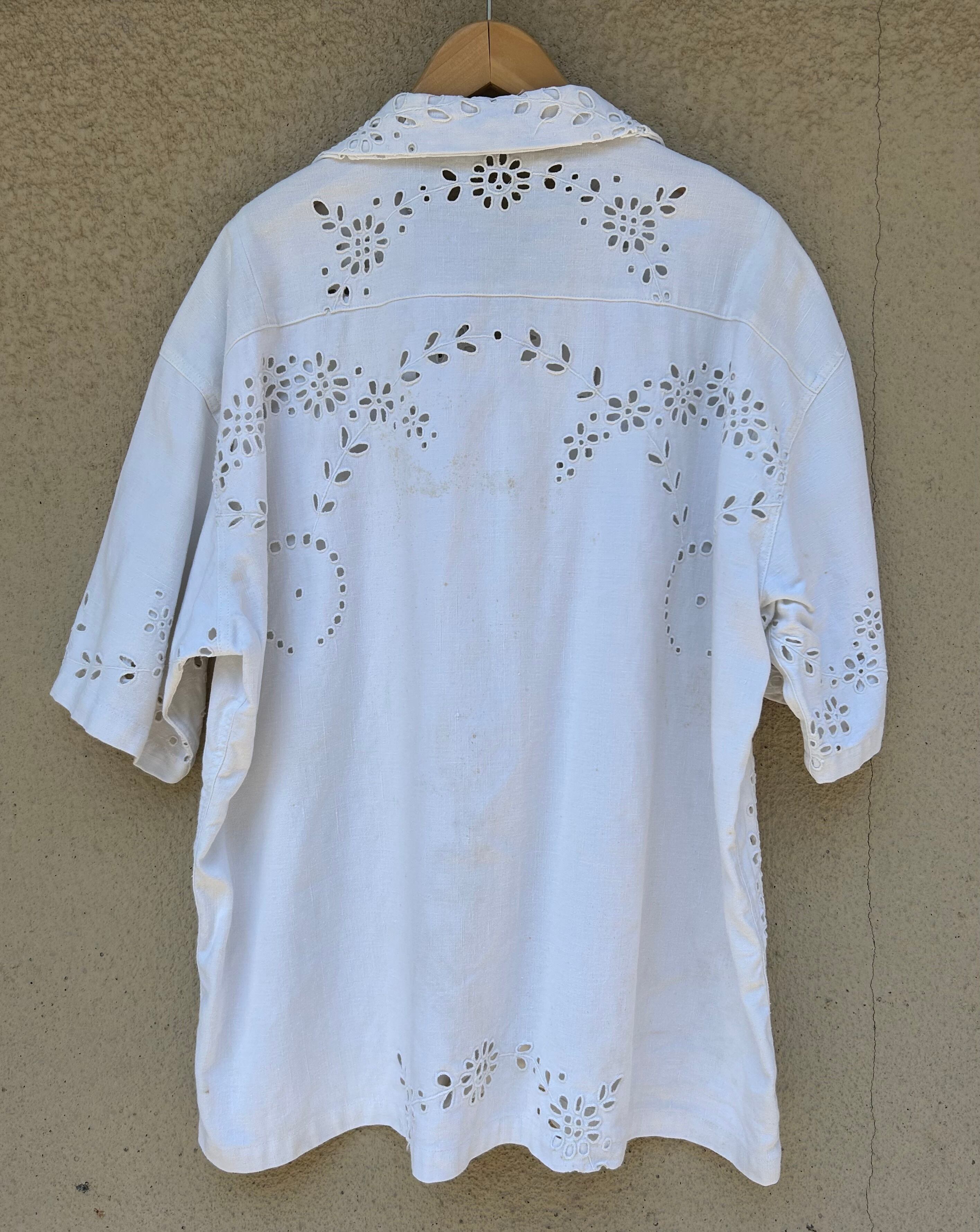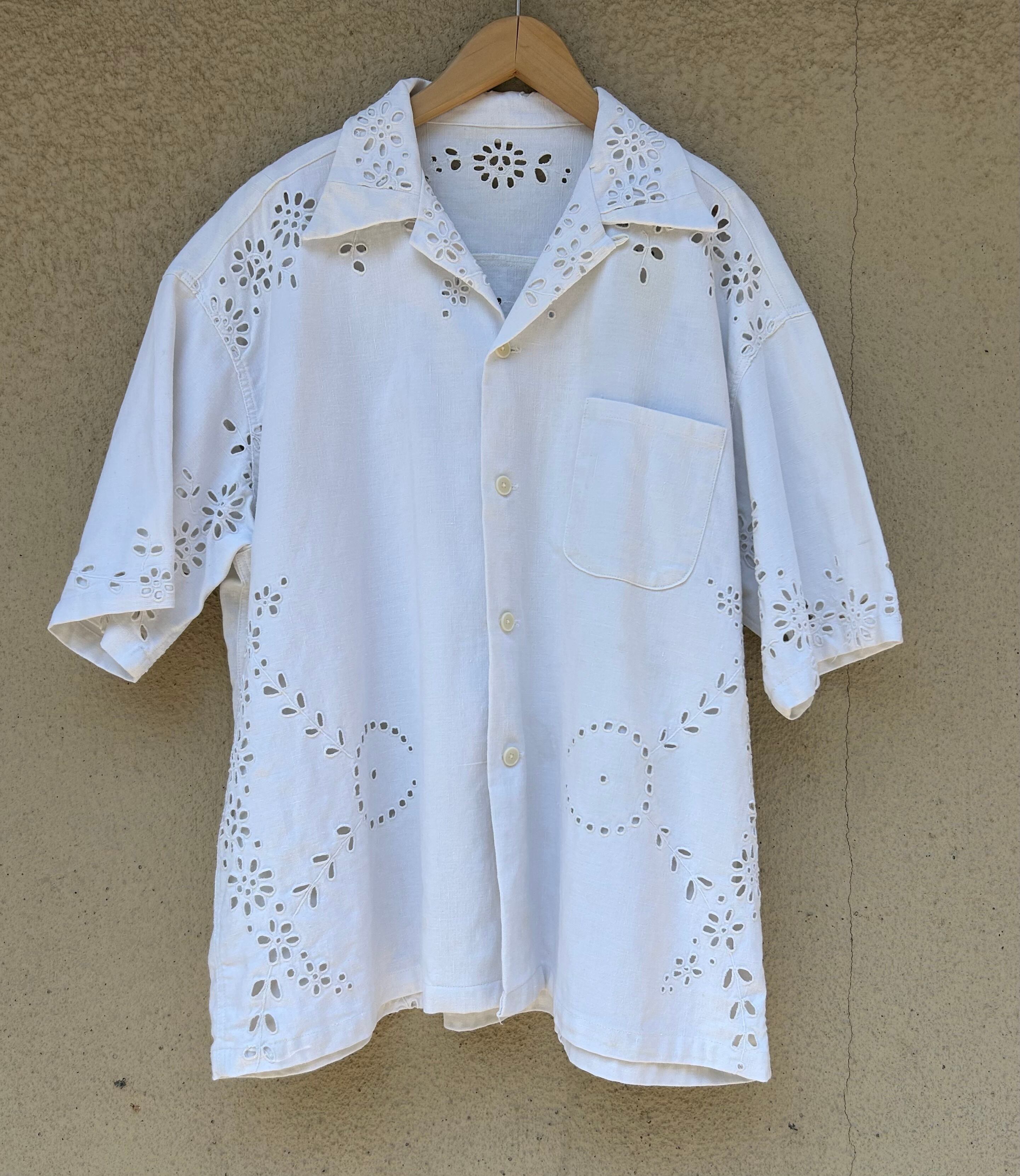 60年代ヨーロッパ穴レースのテーブルウエアー生地を使いリメイクしました。