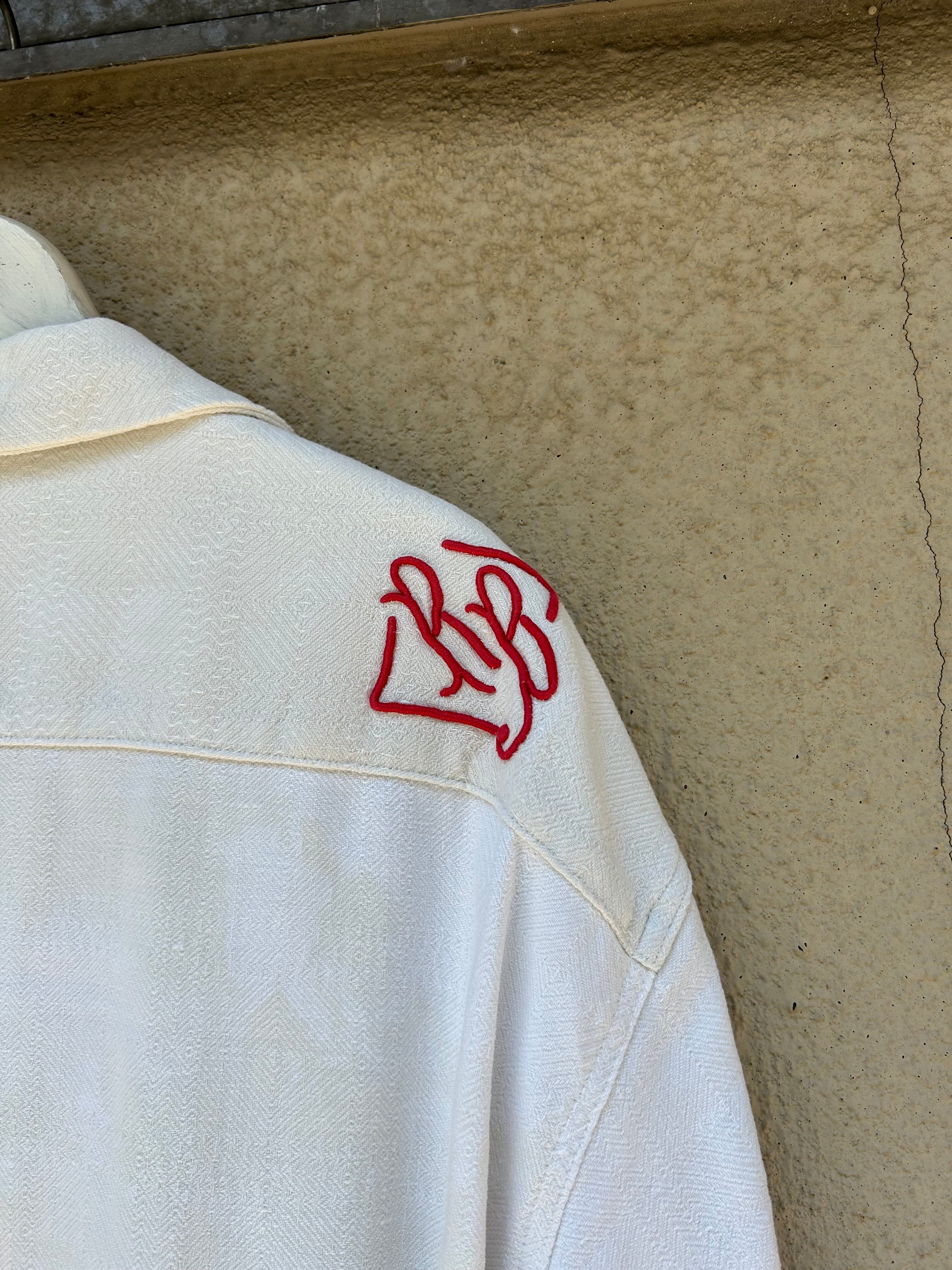 40年代アメリカのオープンシャツを元型のデザインとしたことで生地とも相性良く仕上がりました。