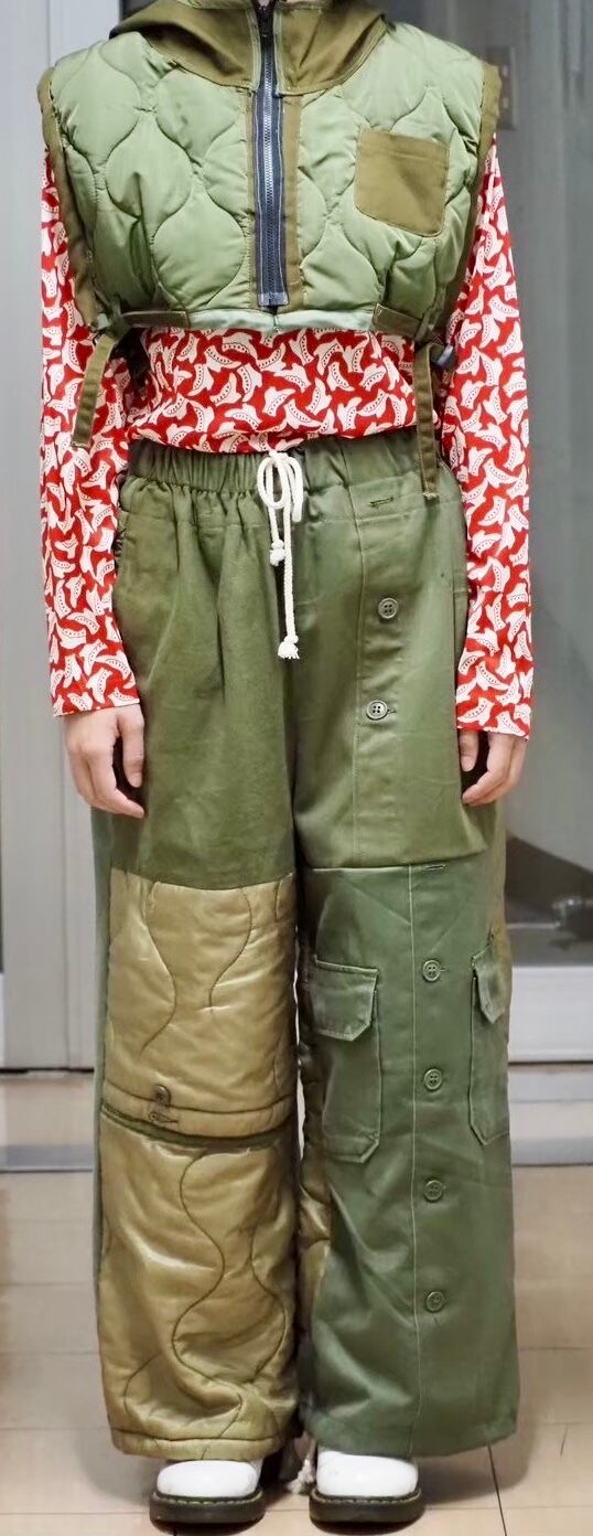 usedの軍物生地を使ったパッチワークEZパンツです。