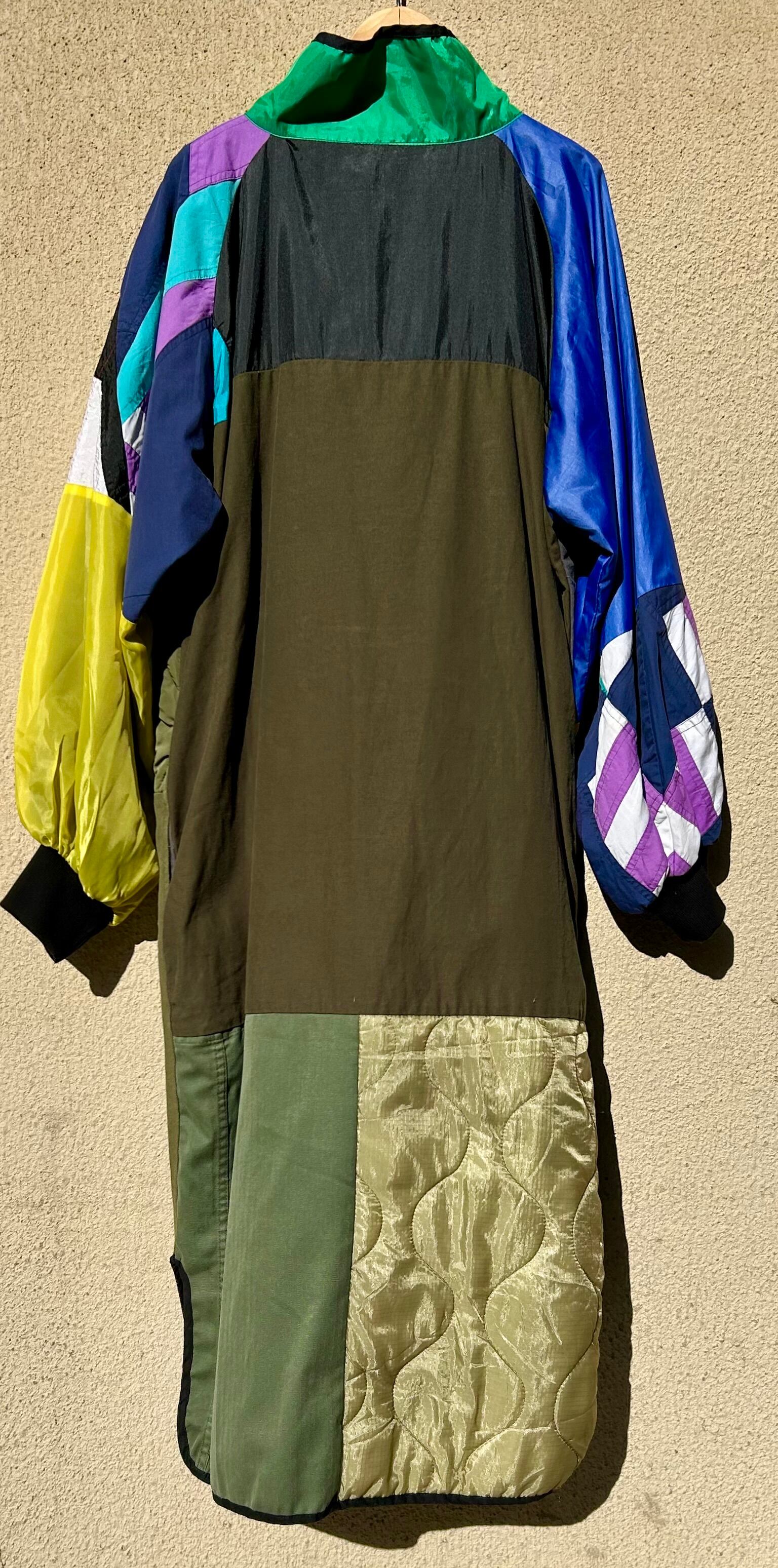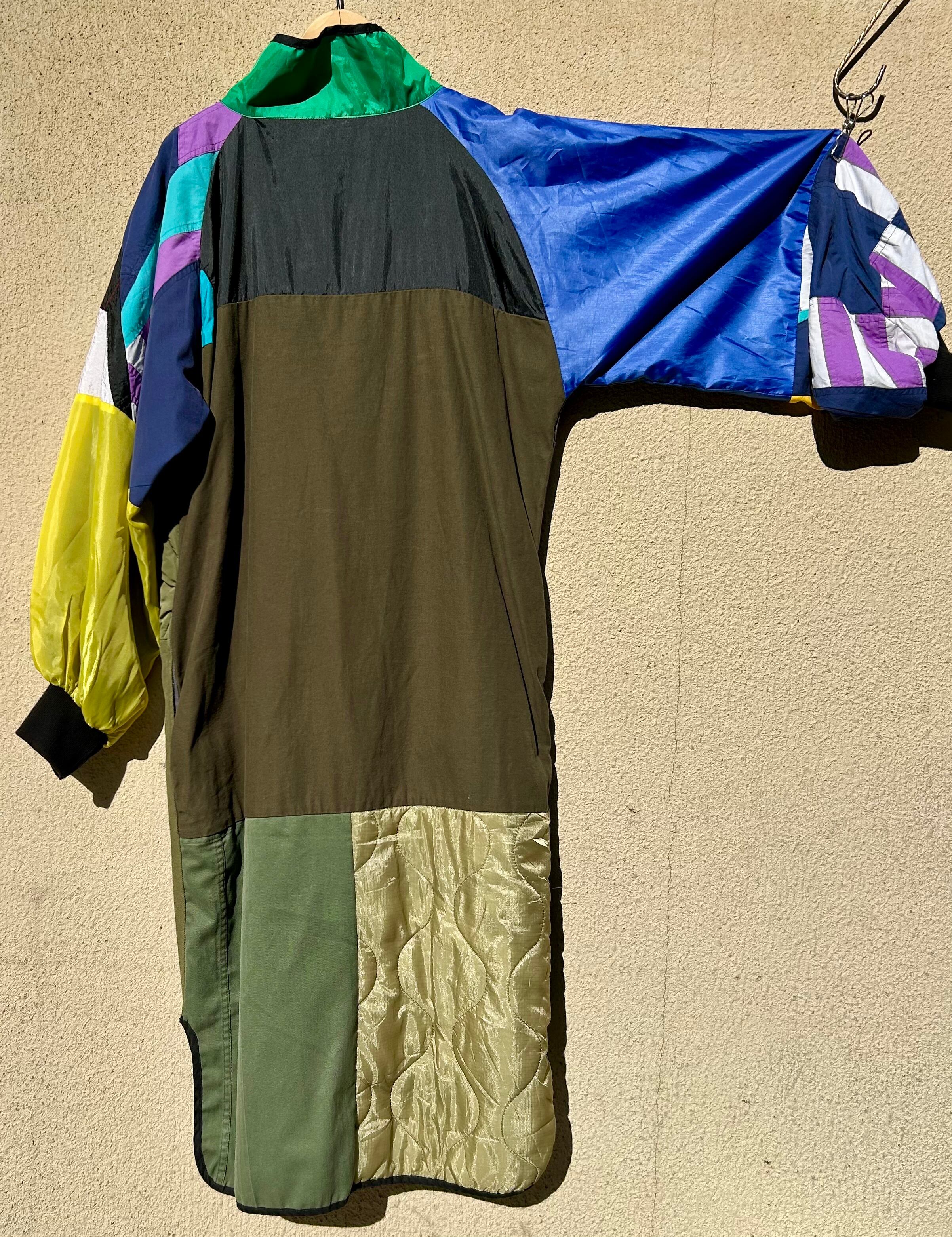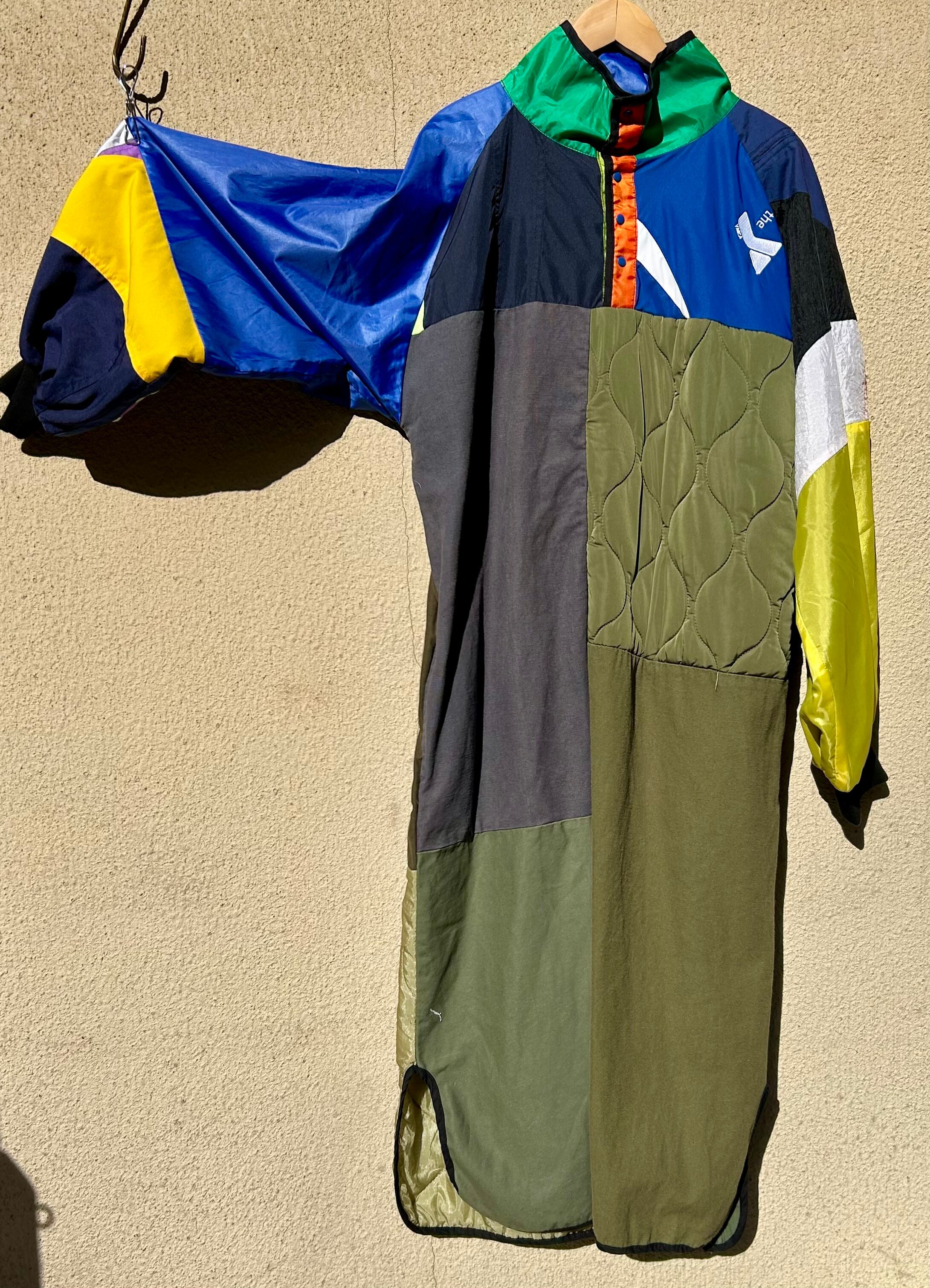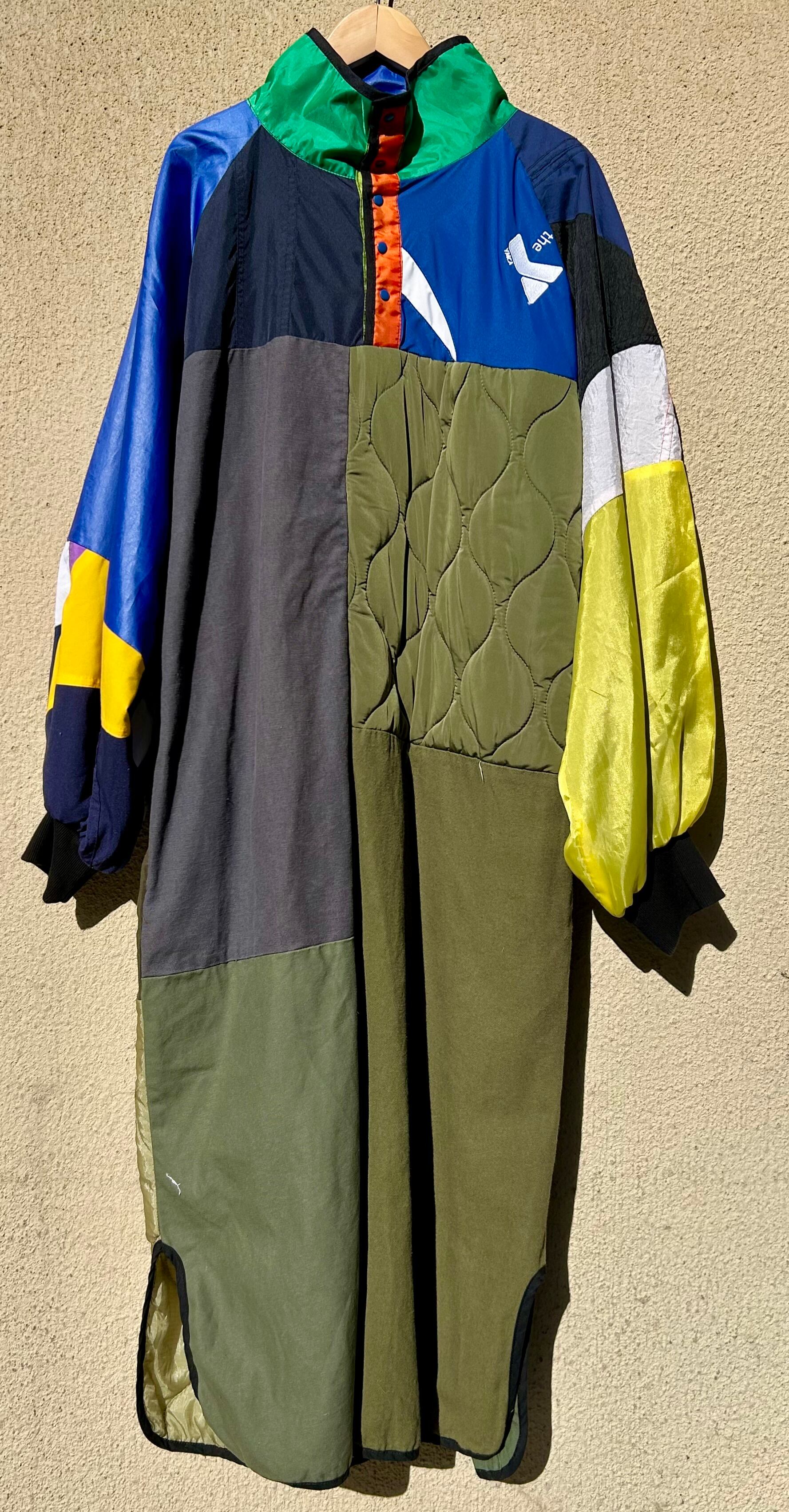 オリジナル リメイクワンピース(ナイロンパッチワーク×アーミーグリーンパッチワーク)