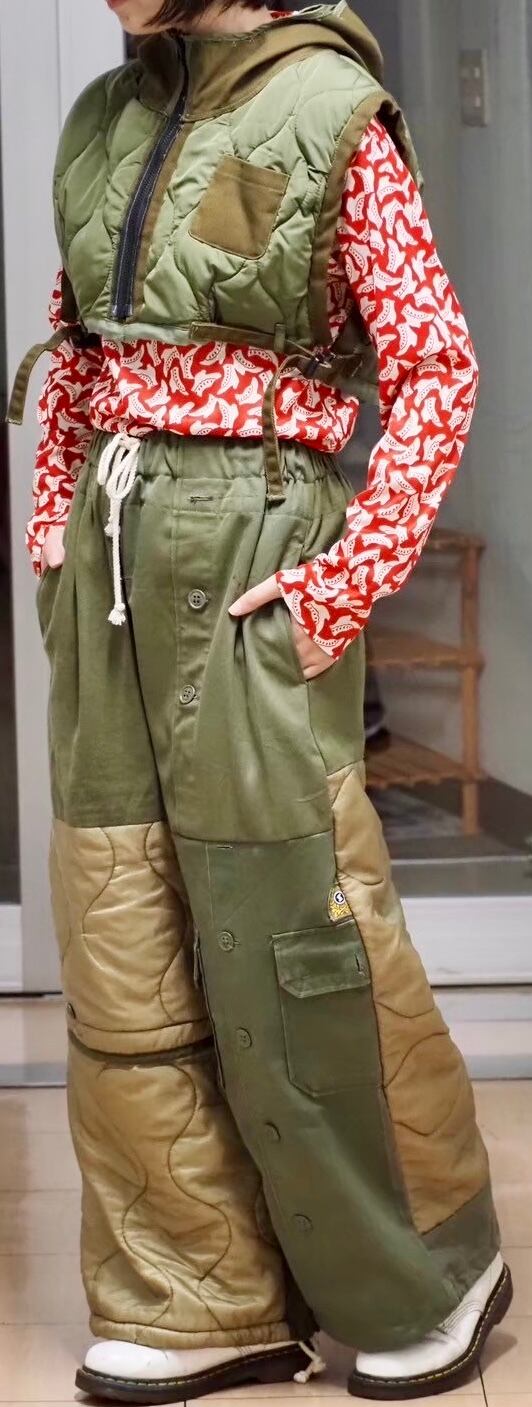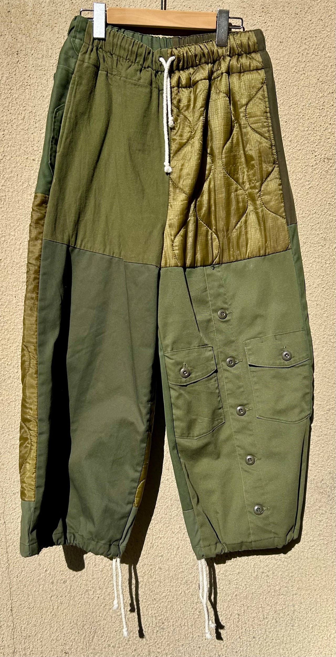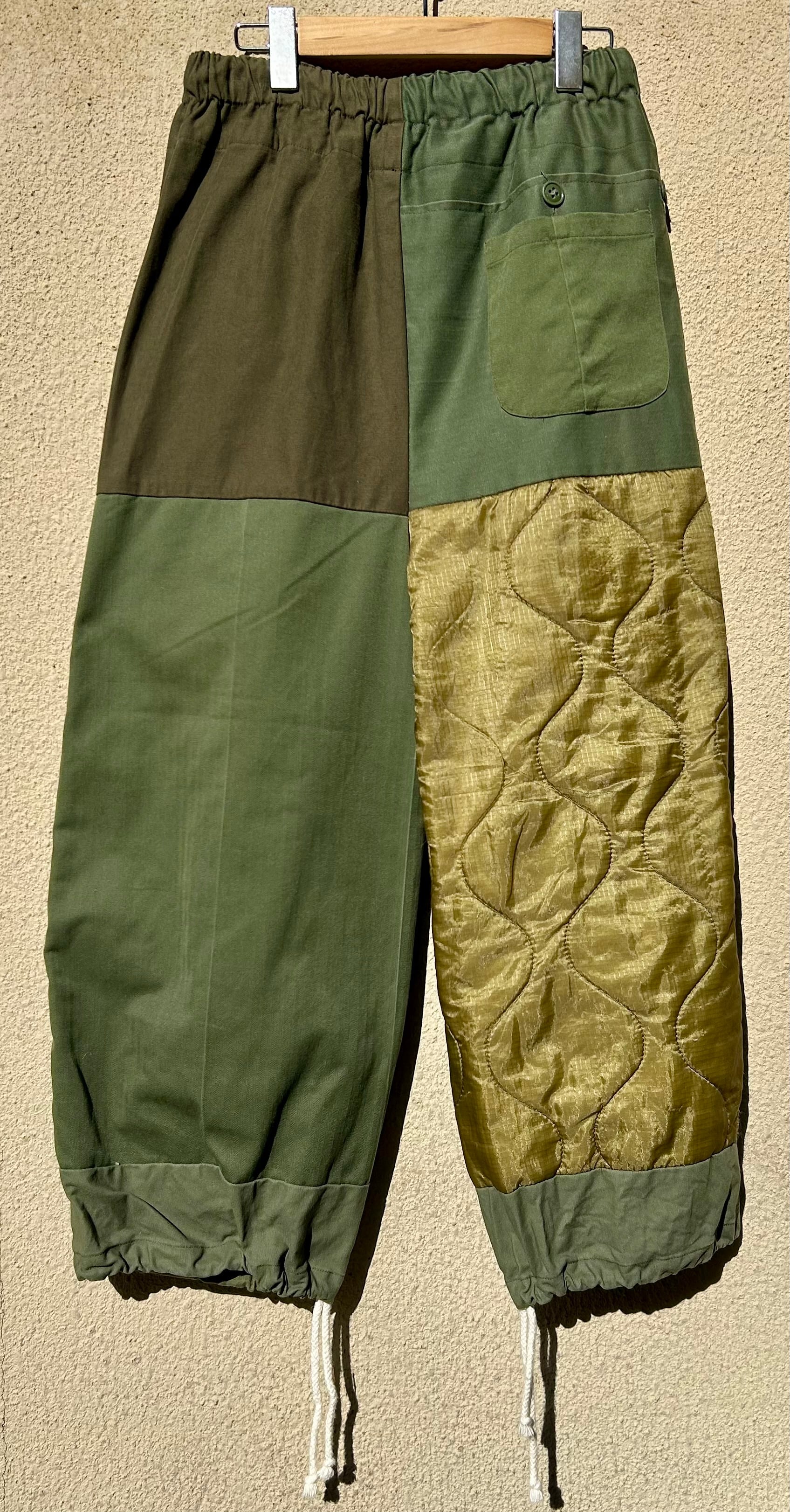 usedの軍物生地を使ったパッチワークEZパンツです。
